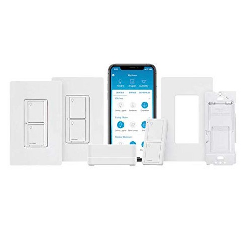 Lutron Caseta Deluxe Smart Switch Kit With Caseta Smart Hub Works With Alexa Apple Homekit Ring Google Assistant P Bdg Pkg2ws Wh White Target